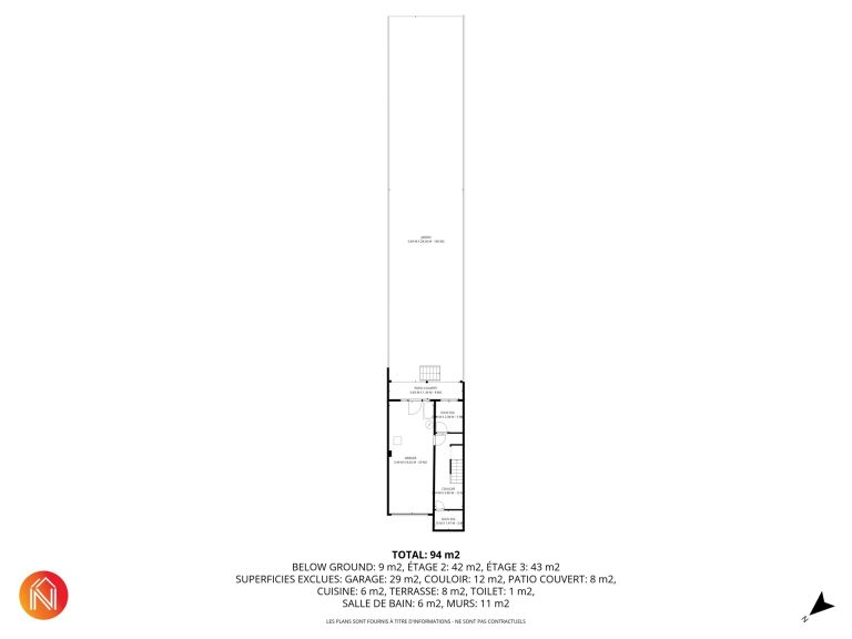 Au sous-sol, un garage de 29 m², un patio couvert de 8 m² et 2 caves, le tout donnant l’accès au coquet jardin.