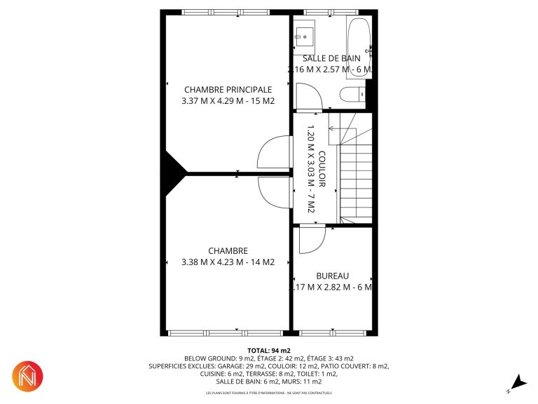 À l’étage, vous découvrirez 2 vastes chambres de 15 m² et 14 m² ainsi qu’un bureau de 6 m² et une salle de bains neuve de 6m².