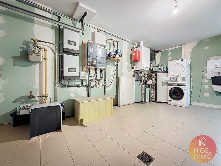 Côté technique, cette propriété offre des prestations de qualité : chauffage central au gaz avec chauffage par le sol au rez-de-chaussée, boiler thermodynamique pour la production d’eau chaude, 24 panneaux photovoltaïques, châssis bois double vitrage anti-effraction, citerne d’eau de pluie raccordée aux WC, à la buanderie et au robinet extérieur, volets (en partie), portail, système d’alarme ainsi qu’une installation de vidéosurveillance. Son excellente performance énergétique en classe B (156 kWh/m².an) constitue un atout supplémentaire.