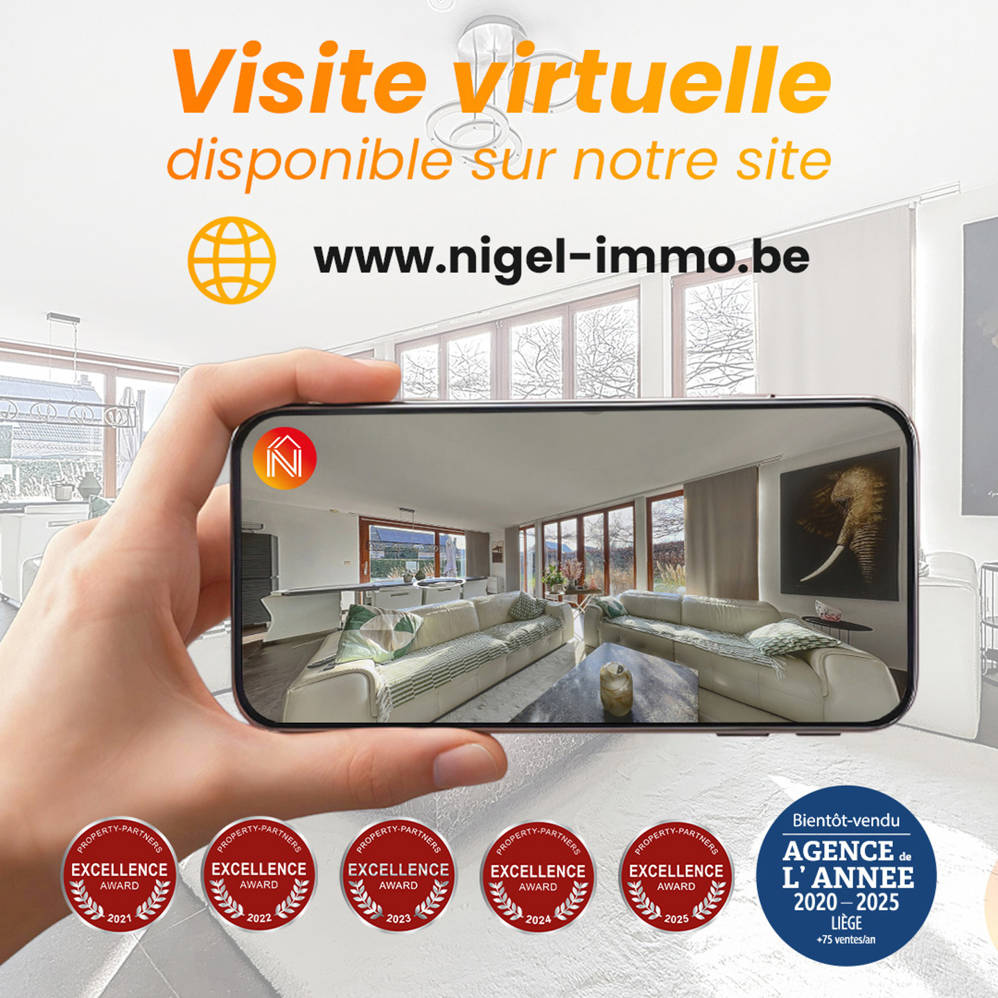 Visite virtuelle 360°, plans 2D, prise de rendez-vous en ligne 7j/7 et bien plus encore sur www.nigel-immo.be.