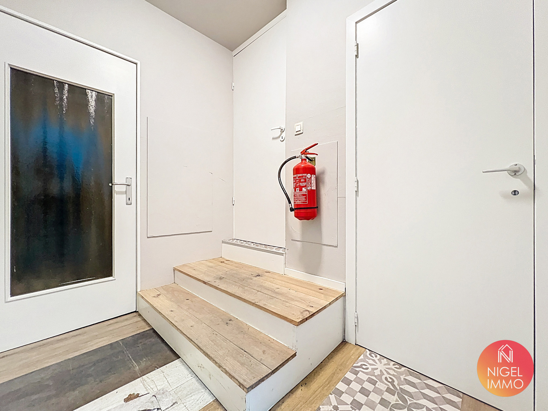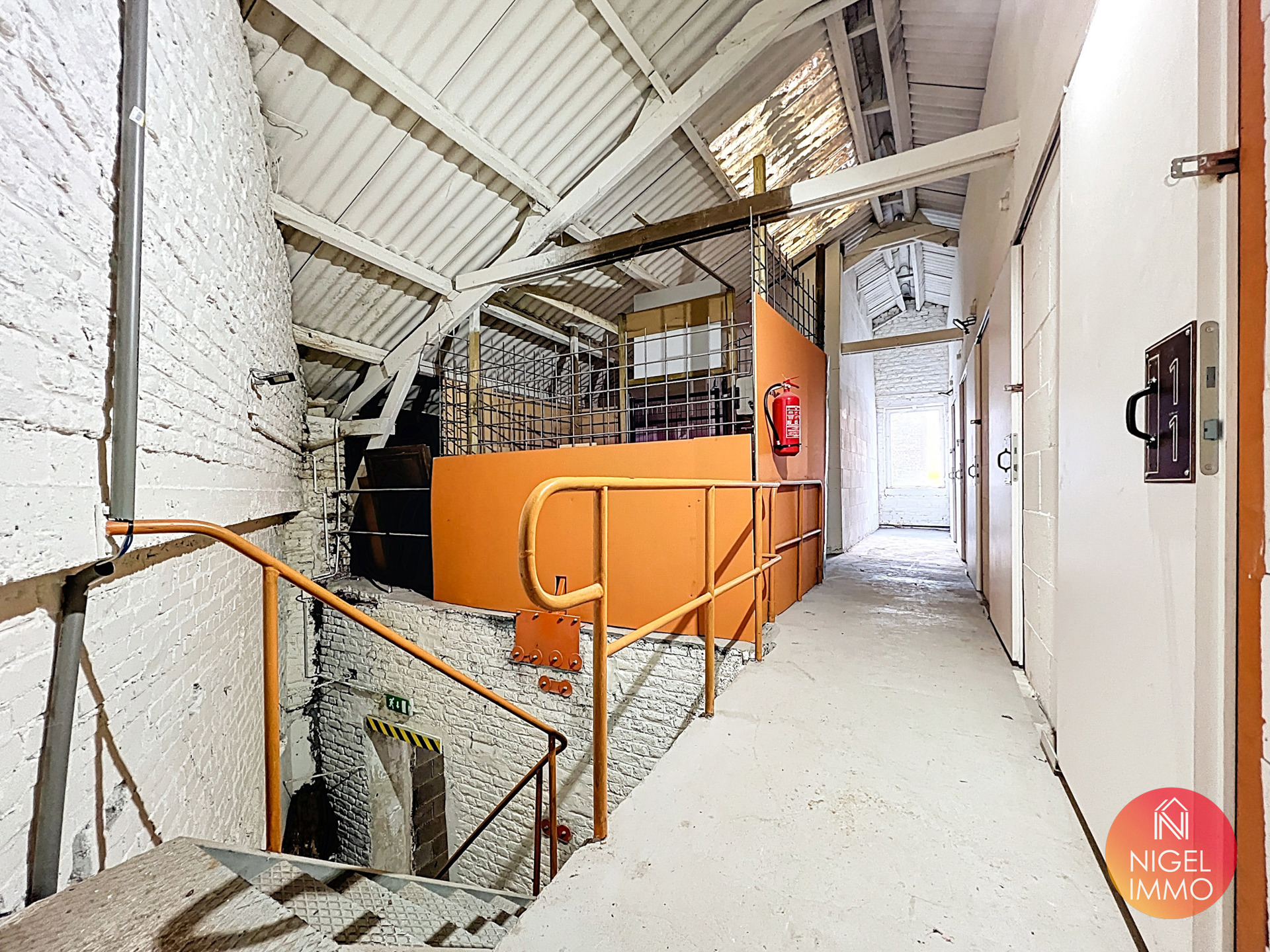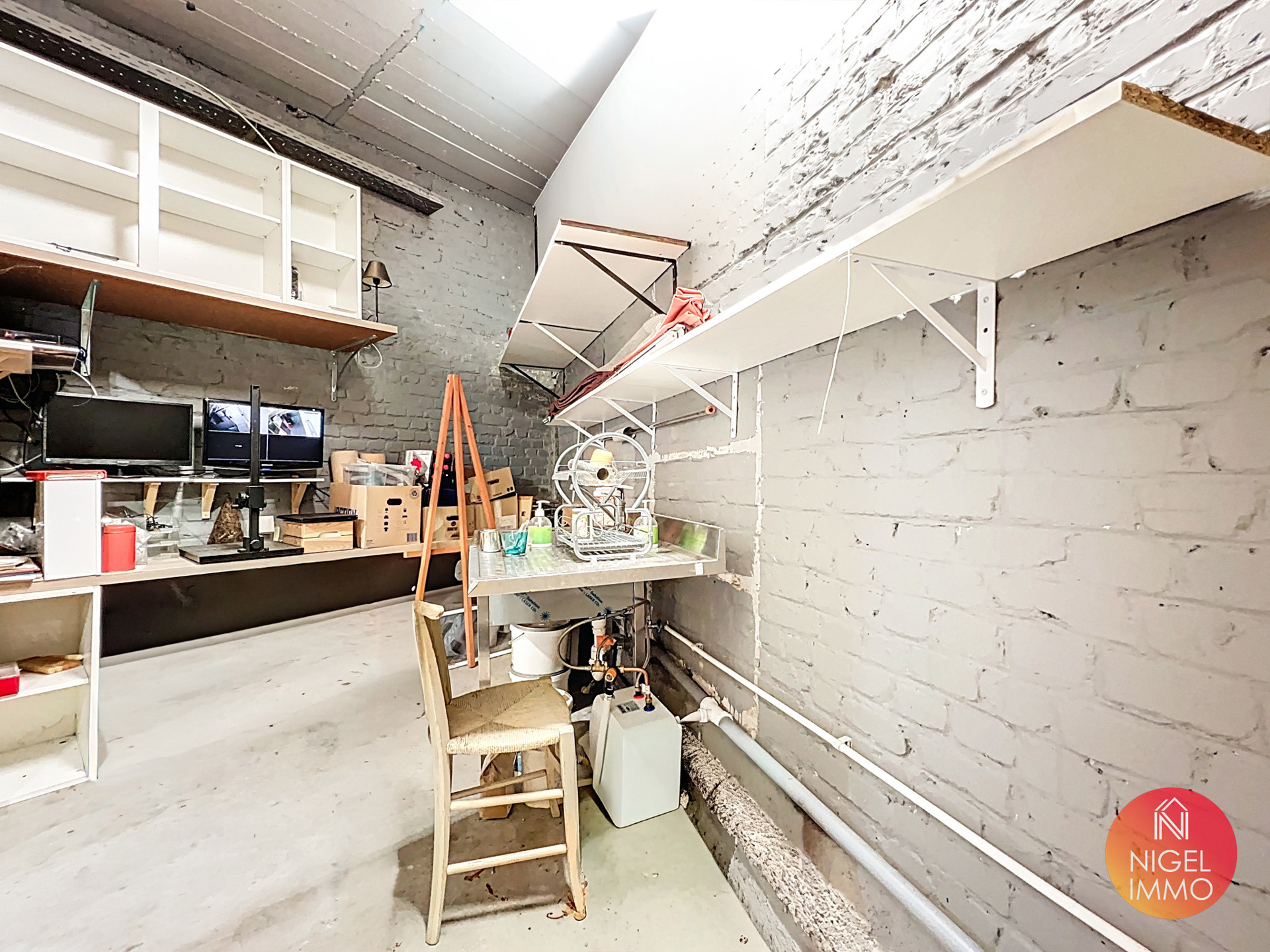 📍 À l’étage et accessible via un élévateur supportant des charges jusque 300 kg ou via escalier :