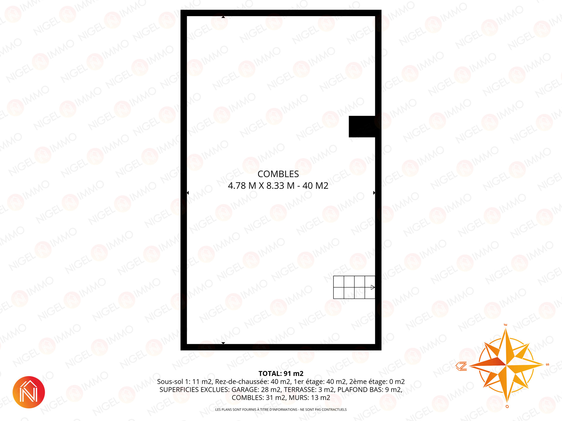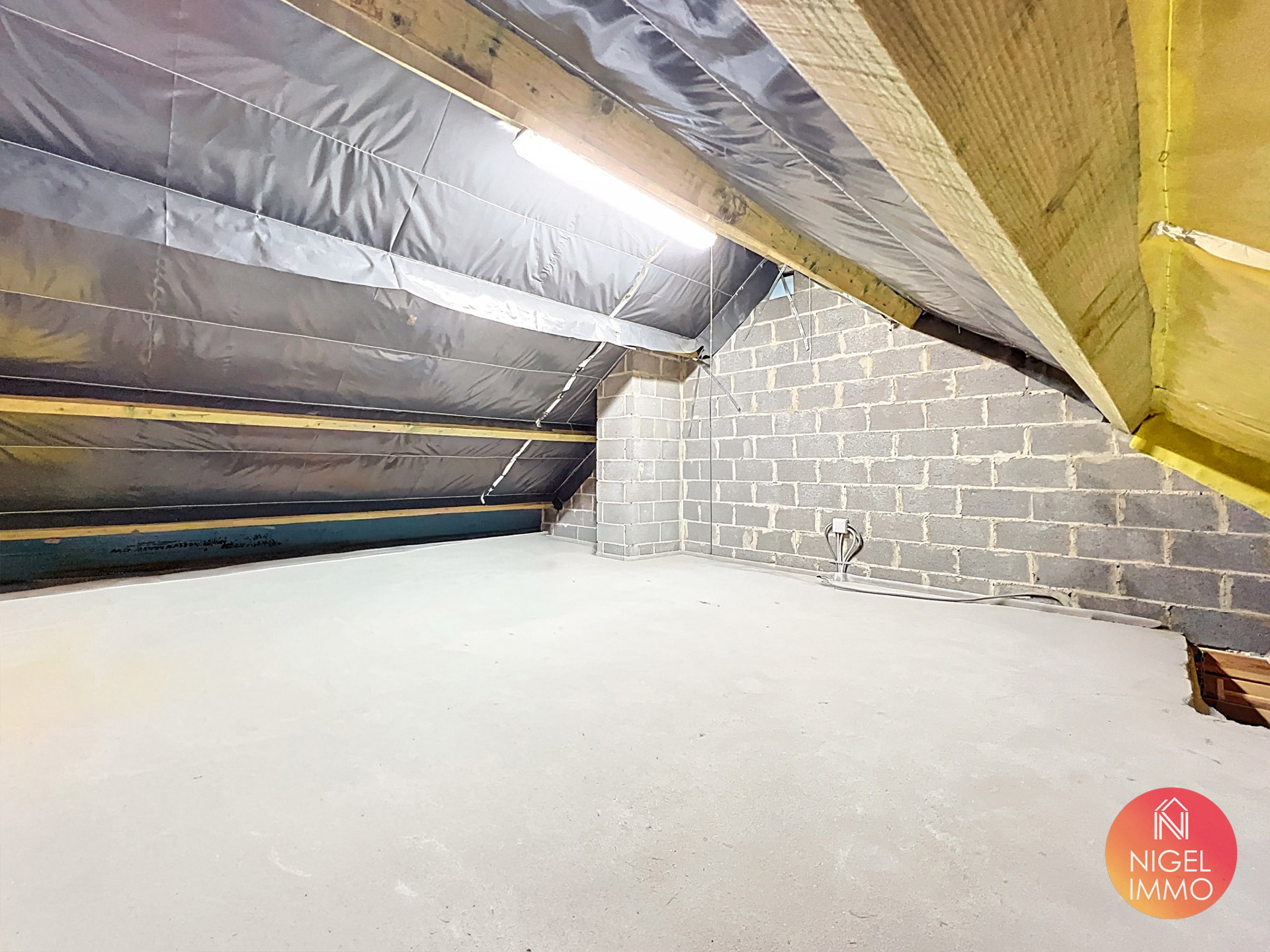 Combles de +/- 40 m² aménageables, offrant la possibilité de créer une chambre supplémentaire, un bureau ou un espace loisirs selon vos besoins.