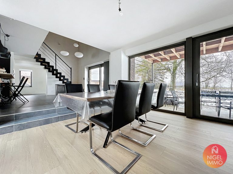 Implantée sur une magnifique parcelle de 3.390 m², la propriété développe plus de 233 m² habitables (selon Peb) et offre des volumes généreux baignés de lumière, en parfaite harmonie avec la nature environnante.
