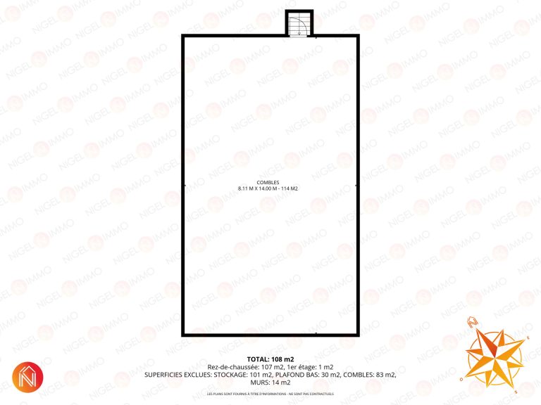 🔹 Combles de +/- 114 m² au sol, offrant un fort potentiel de stockage supplémentaire ou d’aménagement futur.