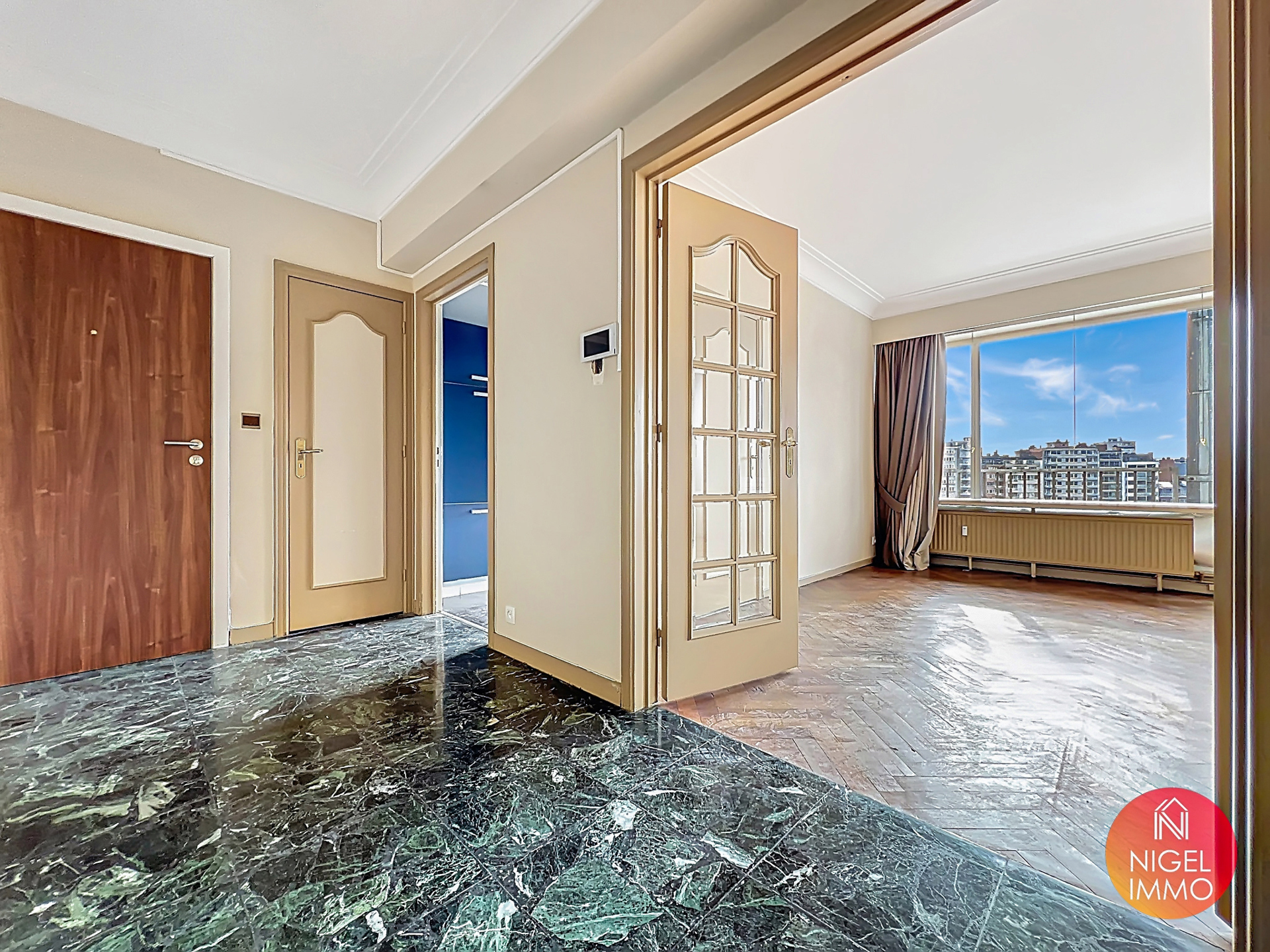 Situé au 2ᵉ étage de la Résidence Kennedy, cet appartement de 109 m² vous séduira par ses beaux volumes, sa luminosité et sa vue époustouflante sur la Meuse.