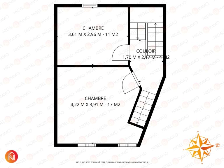 Au premier étage, vous trouverez deux belles chambres de 17 m² et 11 m².